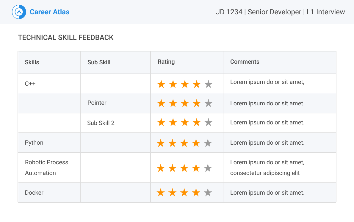 Interviewers can easily verify & ensure that all the required skills in the Job Posts are assessed.