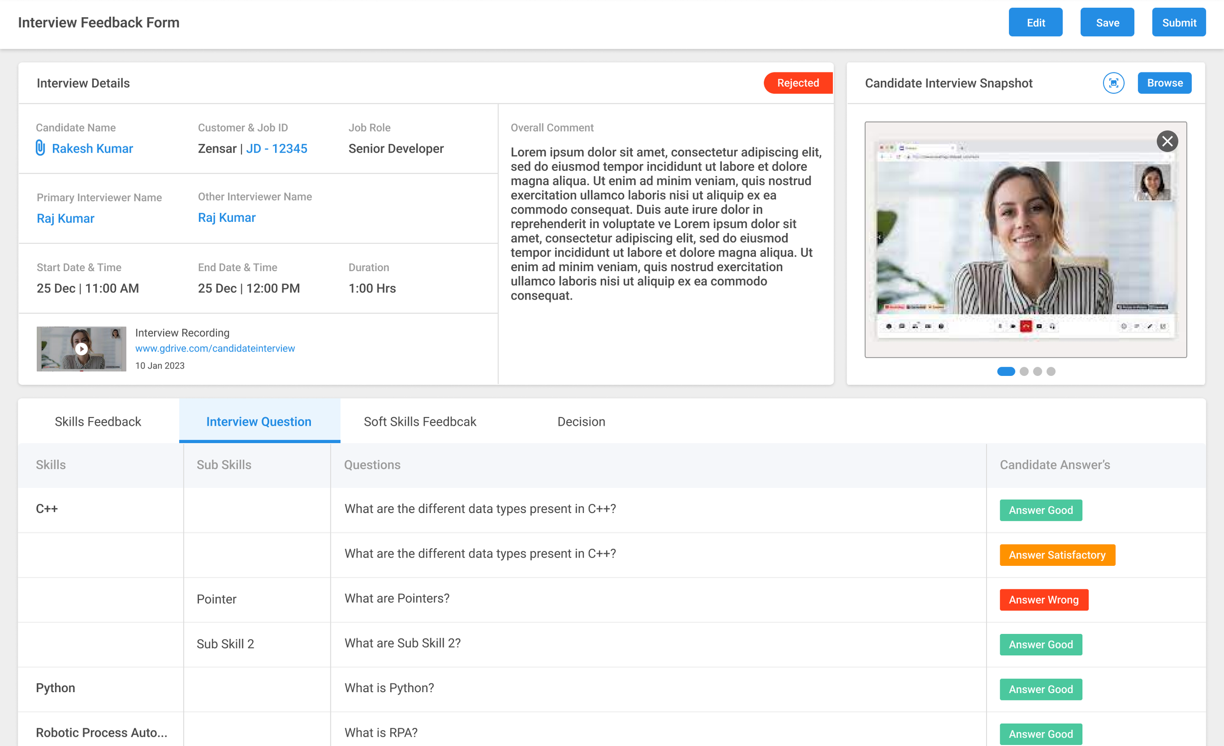 Interactive feedback forms & fitment reports aid and boost the overall interview efficiency.